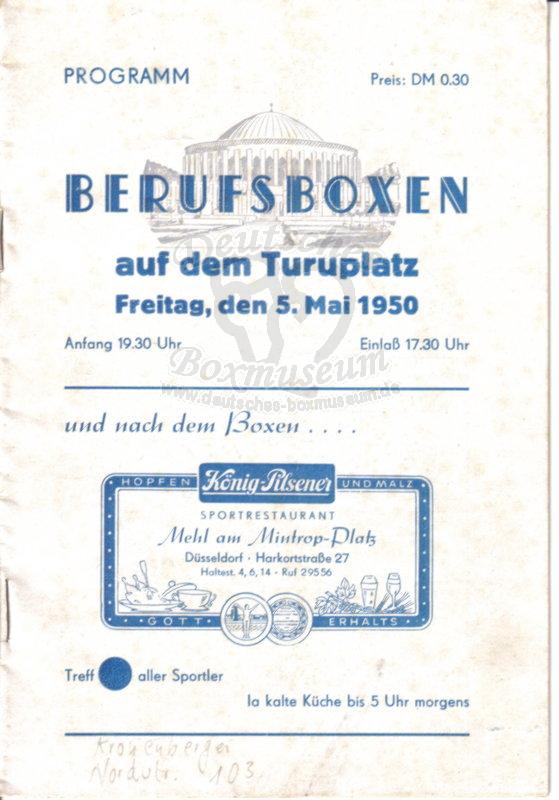Freitag, 05. Mai 1950, Düsseldorf, Turu-Platz, Beginn 19.30 Uhr, Zuschauer 12.000