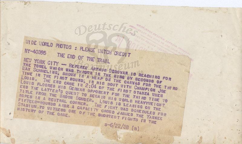 Size/Maße: 9'' x 5'' / 22,8 x 12,8 cmJoe Louis - Max Schmeling - The end of the trail |