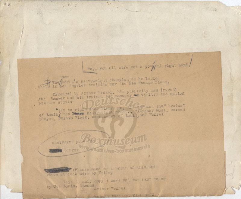 Size/Maße: 9'' x 7.1'' / 22,8 x 18 cmJoe Louis c-8/10/37 |
