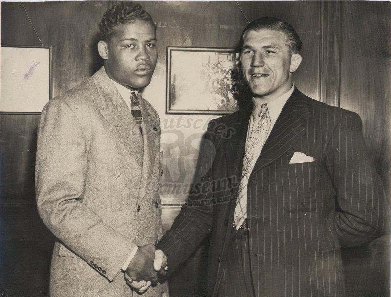 Size/Maße: 9'' x 7.1'' / 22,8 x 18 cmTommy Farr - Joe Louis - Farr and Louis sign fpr title bout |