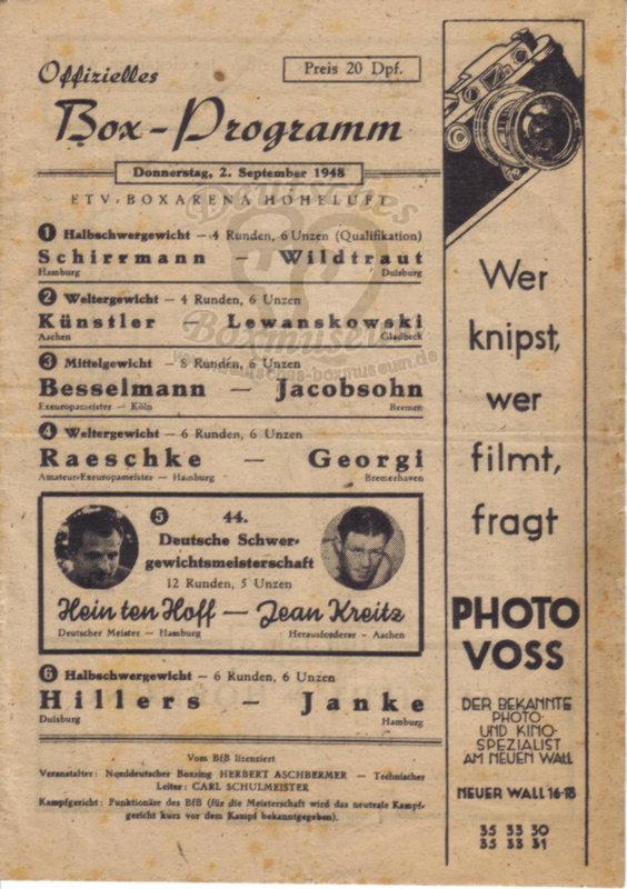 Donnerstag, 02. September 1948, Hamburg, ETV Boxarena Hoheluft