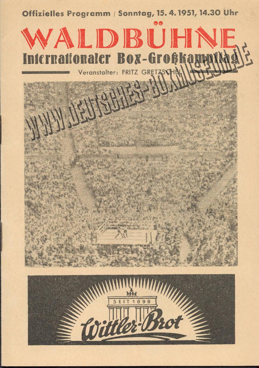 Mittelgewicht Hans Stretz - Widmar Milandri PTS Stretz 8 8 Halbschwergewicht Heinz Sachs - Renato Tontini PTS Tontini 8 8 Weltergewicht Gustav Scholz - Francesco Fratalia PTS Scholz 8 8 Halbschwergewicht Dietrich Hucks - Burl Charity PTS Hucks 8 8 Schwergewicht Richard Vogt - Rudi Oremek KO Vogt 4 6