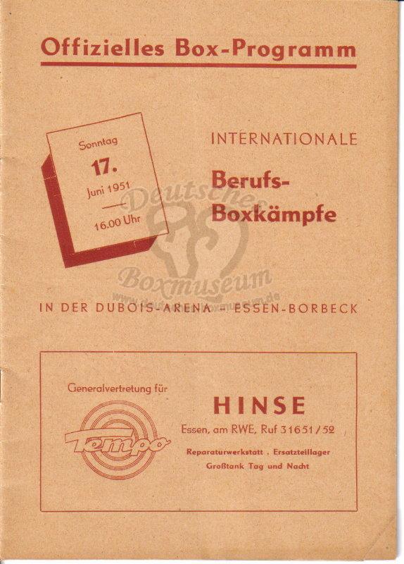 Sonntag, 17. Juni 1951, Essen, Dubois-Arena
