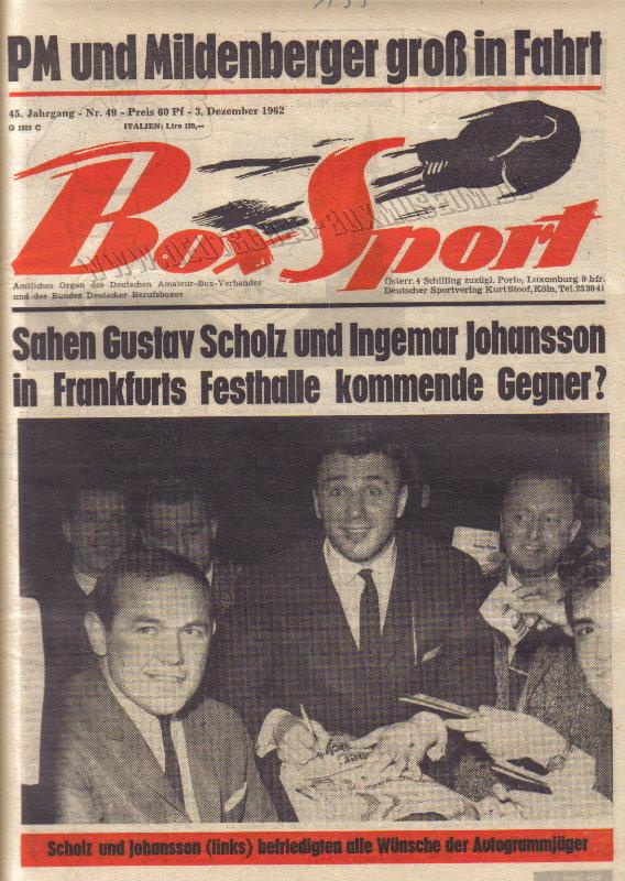 Originalautogramme von Ingemar Johansson und Bubi Scholz auf dem Programmheft