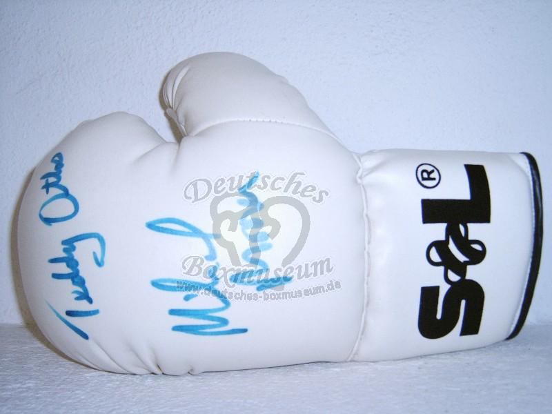 Paar Boxhandschuhe signiert von Virgil Hill und Juan Carlos Gomez