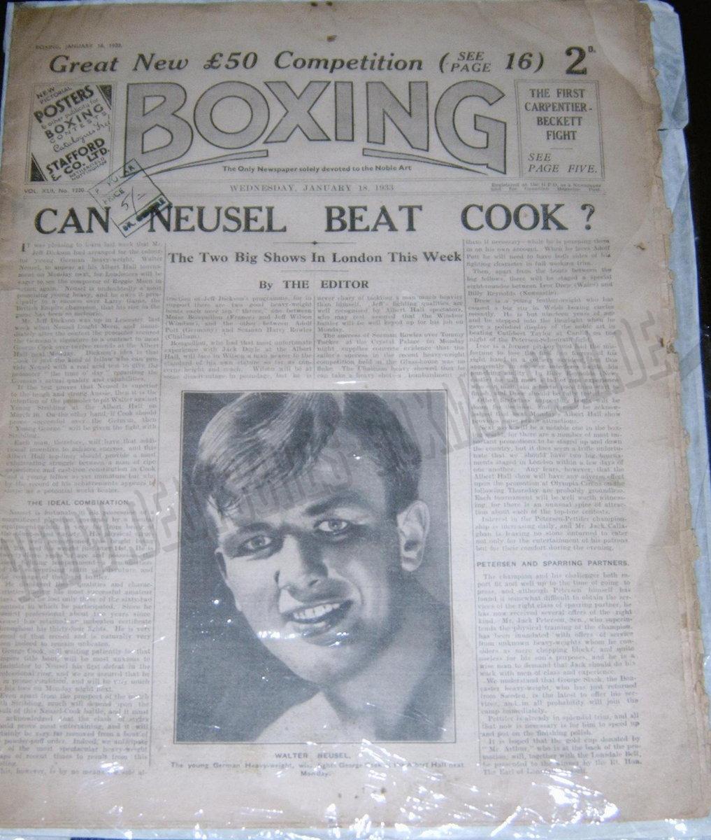 Boxzeitschrift "Boxing", 18. Januar 1933, zum Kampf Neusel - Cook
